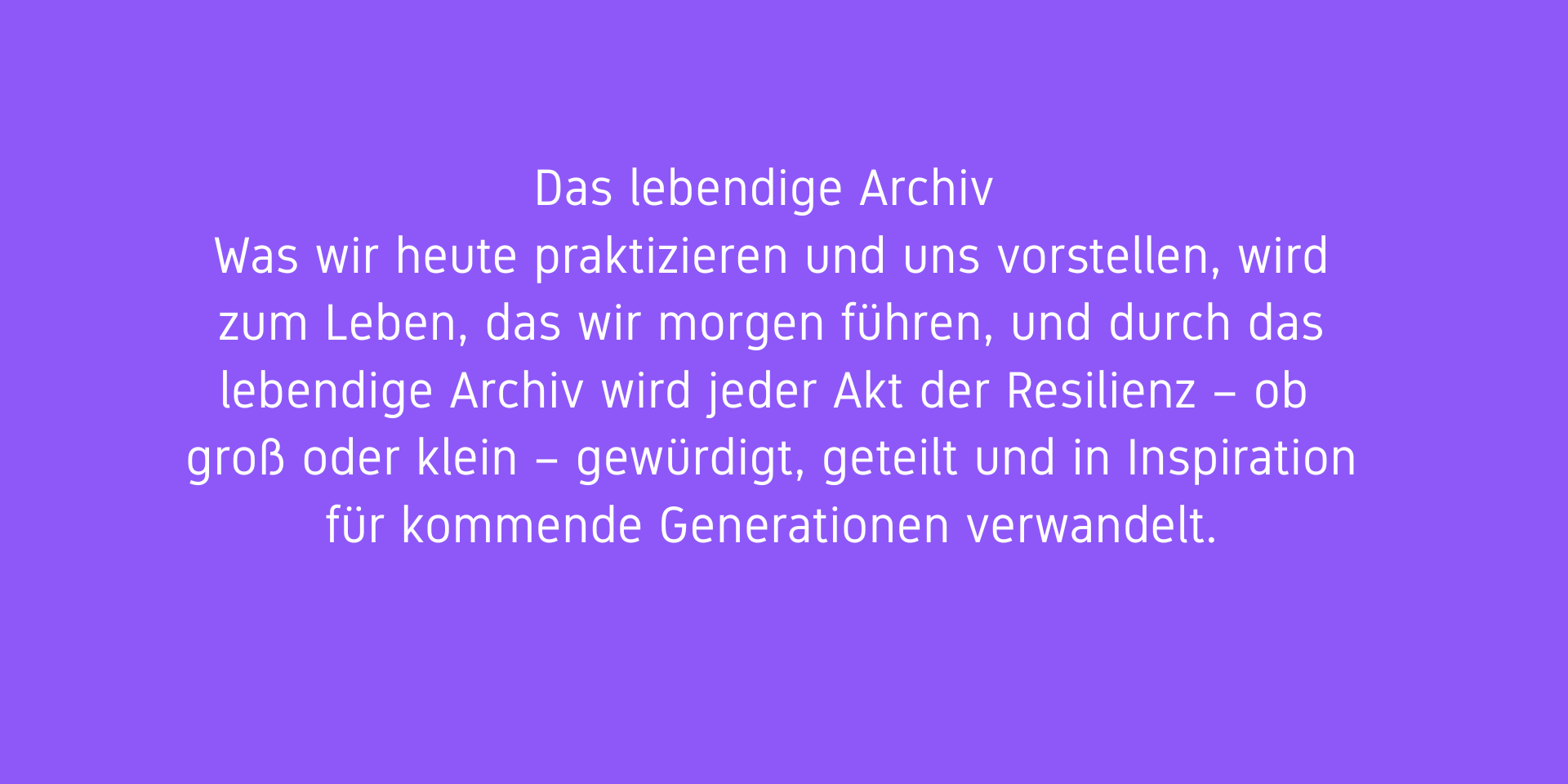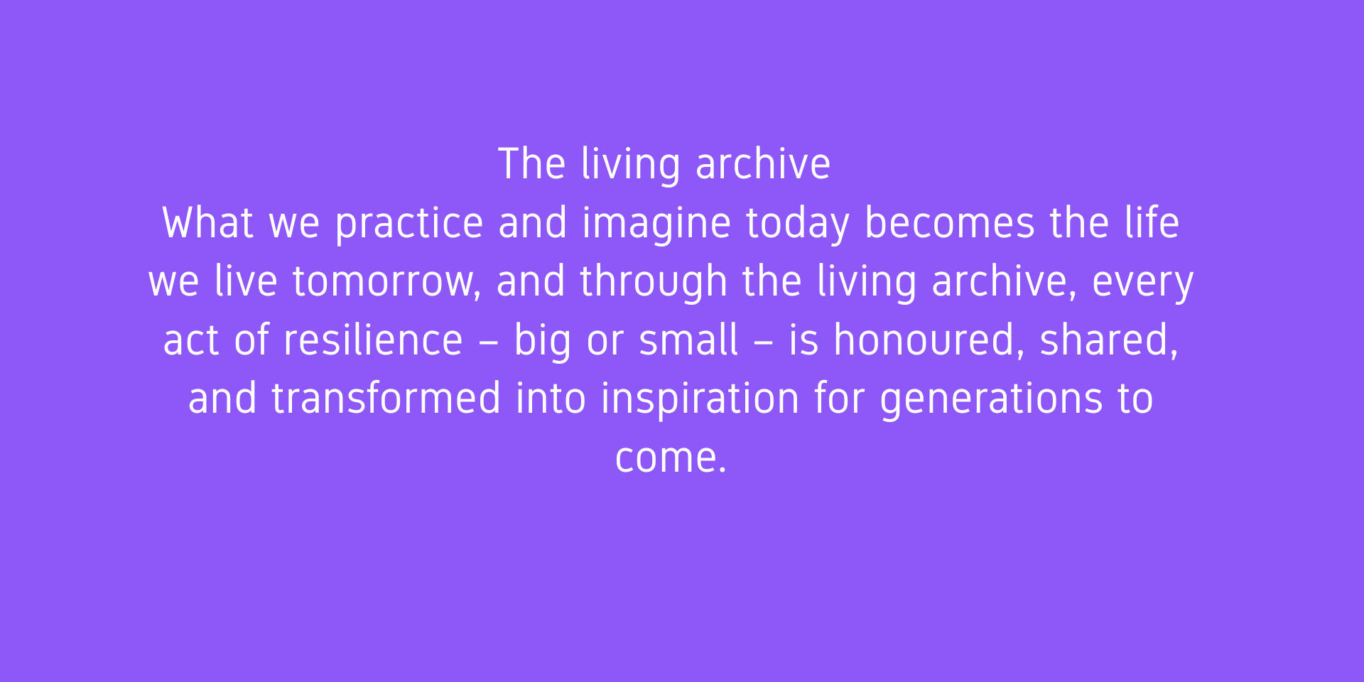 Während wir unsere Visionen darüber darlegen, wie sich die neuen musealen Paradigmen unserer Meinung nach in der täglichen Praxis der Gemeinschaften widerspiegeln könnten, werden wir 2026 unser neues Programm starten, das als „Lebendiges Archiv“ für menschliche Resilienz definiert ist. Unser Ziel ist es, den Geist menschlicher Ausdauer, Kreativität und Anpassungsfähigkeit einzufangen und dabei nicht nur Überlebensgeschichten zu bewahren, sondern auch die Praktiken und Ideen, die unsere gemeinsame Zukunft prägen. Was wir heute praktizieren und uns vorstellen, wird zum Leben, das wir morgen führen, und durch das lebendige Archiv wird jeder Akt der Resilienz – ob groß oder klein – gewürdigt, geteilt und in Inspiration für kommende Generationen verwandelt. Es ist ein Raum, in dem Erinnerung auf Möglichkeiten trifft und in dem die Lehren der Vergangenheit die Vorstellungskraft für das beflügeln, was noch kommen wird. Das Programm ist auch wie ein „lebendiges Museum“ unserer Zeit – ein Raum, in dem Fantasie, Forschung und Partizipation aufeinandertreffen, um zu ergründen, was die Gegenwart bedeutet und wie sie zur Zukunft wird.